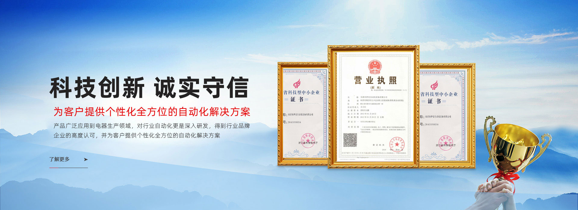 樂(lè)清市伊宏自動(dòng)化設(shè)備有限公司創(chuàng)立于2013年,與中國(guó)電器之都樂(lè)清市柳市鎮(zhèn)相鄰,公司擁有現(xiàn)代化廠房,是一家專業(yè)研發(fā)低壓電器自動(dòng)化生產(chǎn)的科技型企業(yè),擁有多項(xiàng)電器自動(dòng)化生產(chǎn)設(shè)備專利,公司生產(chǎn)銷售的設(shè)備有各種微型斷路器裝配生產(chǎn)線,各種斷路器滅弧室自動(dòng)化生產(chǎn)設(shè)備,各種斷路器磁芯自動(dòng)化生產(chǎn)設(shè)備,各種斷路器磁組件及機(jī)械聯(lián)動(dòng)機(jī)構(gòu)組件自動(dòng)化生產(chǎn)設(shè)備,各種斷路器組件焊接設(shè)備,以及機(jī)器人協(xié)同自動(dòng)化配套設(shè)備定制。